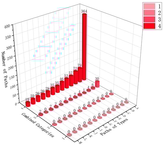- The number of effective paths increases with the number of node combinations. This is because combining more nodes amplifies the cumulative risk effect. A single node’s risk may not be sufficient to surpass the threshold of a critical node. However, when multiple nodes are combined, their cumulative risk may exceed the threshold, triggering the critical node and activating more potential paths, thereby increasing the number of effective paths.
