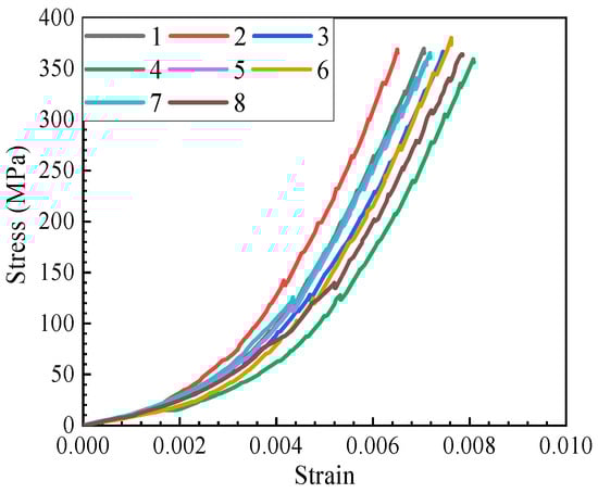 Force–displacement curves of the cables: (a) 200-0-T; (b) 200-20-T; (c) 150-0-T; (d) 150-20-T.