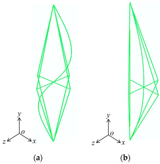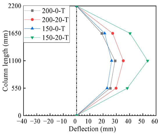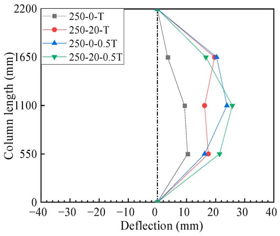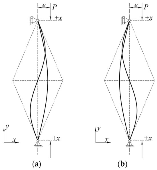 Initial deformations of the main column for different imperfection directions: (a) +x-direction; (b) −x-direction.