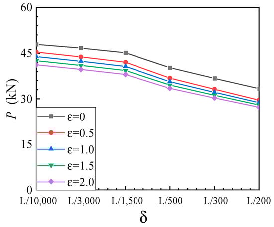 Ultimate load-carrying capacities of the columns for different initial imperfection sizes.