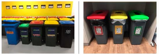 Bins and containers for waste separation in the operation stage in Case Study B. Source: retrieved from Project B’s WM plan.
