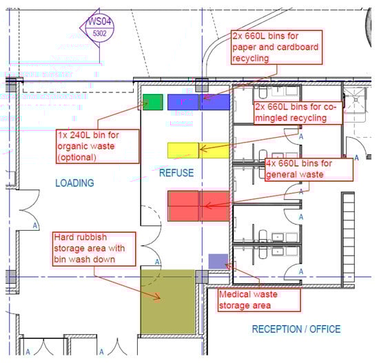 Indicative layout of the central waste storage room for Case Study D. Source: retrieved from Project D’s operational WM plan.
