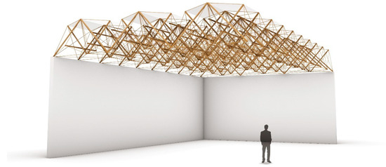 - Liapi, K.; Papantoniou, A.; Ioannidi, A. Double-Layer Tensegrity Networks of Helicoidal Shape: From Algorithmic to Physical Models. Proc. IASS Annu. Symp. 2018, 2018, 1–6. [Google Scholar]