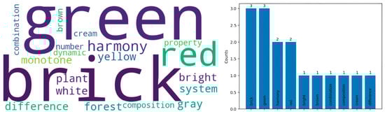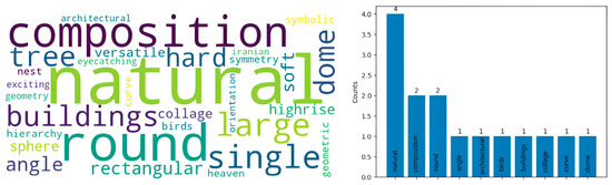 Regarding the form aspect, the identified theme revolves around “Natural composition featuring rounded edges and curves”. This theme emerged from the high frequency of “natural” as the most mentioned word, complemented by “composition” and “round” as the second-most mentioned words (Figure 3).