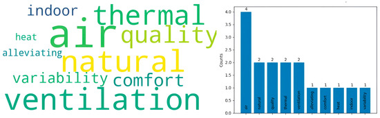 After removing the stopwords, we performed the analysis by counting and visualizing all remaining words through both bar charts and word clouds, providing a holistic representation of the extracted common words and their frequencies. For the word cloud visualization, words that are mentioned more frequently are represented as larger in the cloud, indicating their greater quantitative importance. Conversely, words with fewer mentions and, thus lesser quantitative significance are depicted as smaller in the cloud. This approach allows for an intuitive and visually meaningful representation of the relative importance of each common word within the analyzed text corpus, thereby formulating them into themes of each architectural component.
