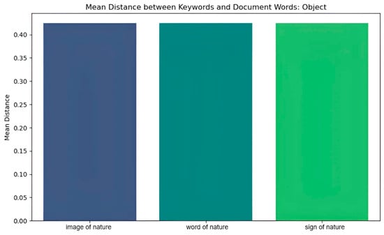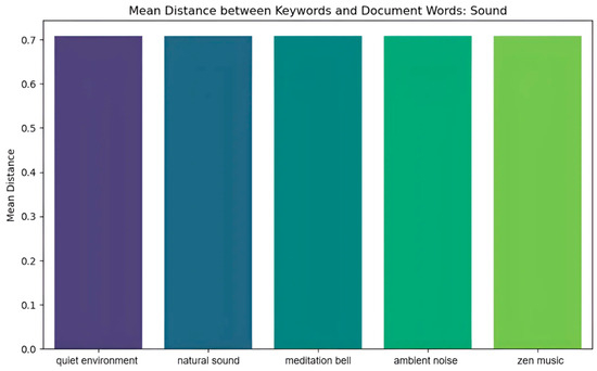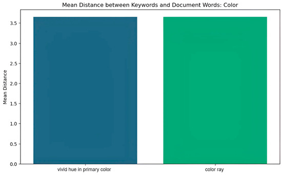 We conducted quantitative association calculations at two levels: document-to-keyword (i.e., between each corpus and each keyword) and document-to-document (i.e., between all keyword corpora and all document corpora). Bar charts were generated at the document-to-word level to effectively convey the disparities in association between each keyword and the document corpus. In terms of interpretation, higher semantic distance values signify greater similarity between words or documents, indicating stronger semantic associations.