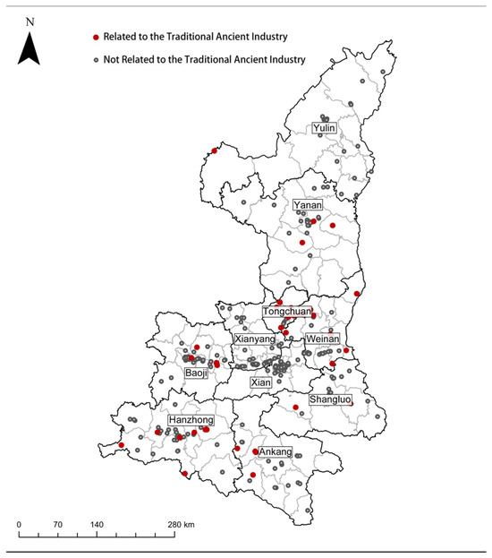 Map of traditional ancient industry heritage sites in Shaanxi.