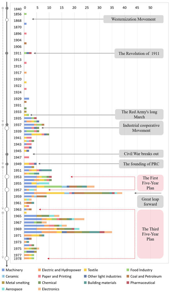 - After the Opium War: The introduction of industrial machinery in China led to changes in the development of traditional ancient industry nationwide [54]. Although Shaanxi was a relatively backward area at that time, it was influenced by its introduction.