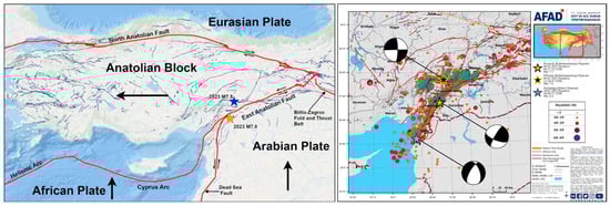 - USGS. The M7.8 and M7.5 Kahramanmaraş Earthquake Sequence Struck near Nurdağı, Turkey (Türkiye) on February 6 2023; United States Geological Survey: Reston, VA, USA, 2023. [Google Scholar]
