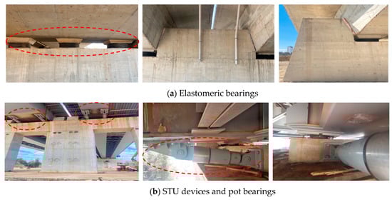 Views from the elastomeric and pot bearings, shock transmission unit devices, and expansion joints of the Adana 15 July Martyrs Bridge.