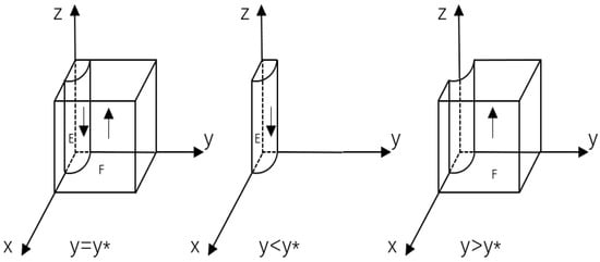 According to the stability theorem of differential equations, for SMBMEs, the condition for the probability of choosing to repay on time to be in a stable state must satisfy: F(x) = 0 and d(F(x))/dx < 0. Since G(y)/y > 0, G(y) is an increasing function of y. Therefore, when y = [(2 + r)L − V − Dz]/Sy*, G(y) = 0, and at this point d(F(x))/dx|x = 0 < 0, implying that x = 0 is the evolutionary stable strategy (ESS) for the SMBMEs. On the contrary, when y > y*, x = 1 becomes the ESS. The phase diagram of the strategic evolution of SMBMEs can be depicted as