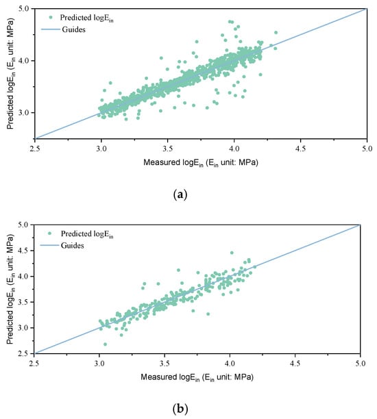 41]. Augmented values for population size and gene head length parameters elevate computational complexity and predictive model accuracy while concurrently extending the duration of computation. Based on preliminary computational trials, the population size was configured at 30, and the gene head length was determined to be 12. The derived model is presented in Equation (17), and the computational outcomes for both the training and validation sets are depicted in