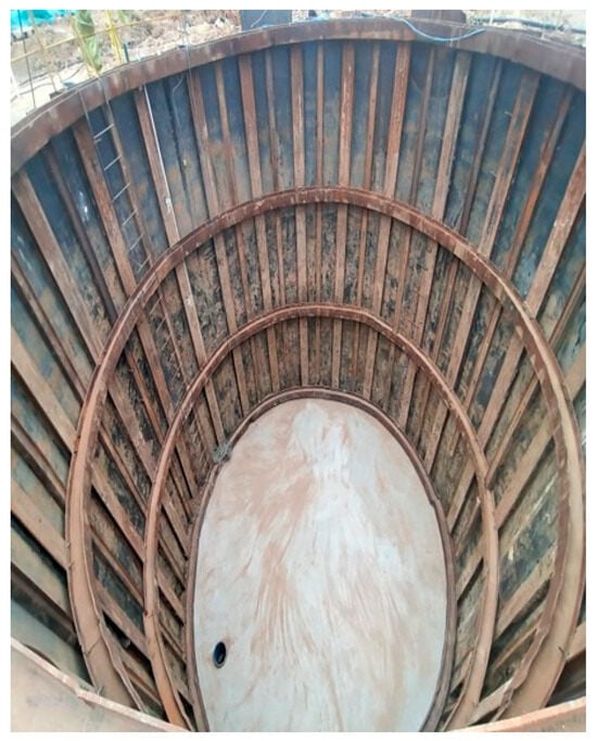 - Tobar, T.; Meguid, M.A. Experimental Study of the Earth Pressure Distribution on Cylindrical Shafts. J. Geotech. Geoenviron. Eng. 2011, 137, 1121–1125. [Google Scholar] [CrossRef]