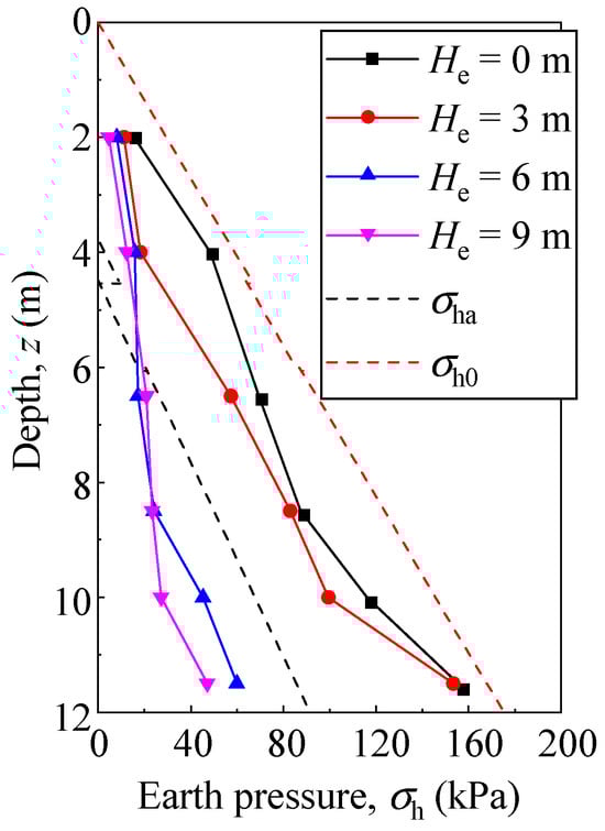 - Tran, V.D.H.; Meguid, M.A.; Chouinard, L.E. Discrete Element and Experimental Investigations of the Earth Pressure Distribution on Cylindrical Shafts. Int. J. Geomech. 2014, 14, 80–91. [Google Scholar] [CrossRef]
