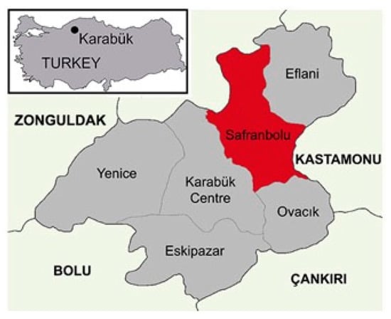 - İller Bankası. Karabük-Safranbolu İmar Plan Etütleri; Harita Genel Müdürlüğü Döner Sermayesi Matbaası: Ankara, Turkey, 1968. [Google Scholar]