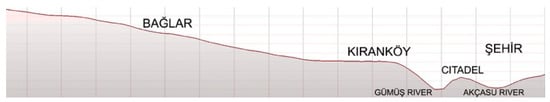 The urban sites are located between the lowest point at 300 m and the Sarı Çiçek Hill at 1750 m (Figure 3). Summers are hot, winters are cold, and springs are mild and cool in the region. Spring and autumn are quite long. The prevailing wind direction is primarily west, southwest, southeast, and northwest [].