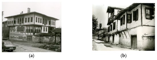 Turkish residence plan typologies are divided into seven, according to geographical regions []. Safranbolu houses, the subject of the study, are examples of the Black Sea coast and hinterland group. These traditional houses express the cultural level and economic prosperity of the public in space and have attracted attention since the 1970s due to their spatial characteristics. The events of the European Architectural Heritage Year in Turkey (1975) were held here, and efforts to document the historical houses with drawings were initiated. Although their owners and functions have changed, traditional houses have preserved their existence until today (Figure 7).