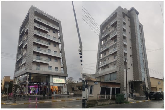 The Avrasya Gold is a 9-storey residential and commercial building. There are 27 2-bedroom apartments located starting from the first floor to the last floor. Four shops are designed on the ground floor and underground car parking is located at the basement floor. The building is formed from the triangular shape of the site and it has a reinforced concrete structure system. The building has an irregular building geometry. White aluminium composite panel coatings are used on the balcony parapets, which creates a flowing appearance. Additionally, glass balustrades are preferred in some parts of the building and other surfaces of the building are painted in grey colour (Figure 7).