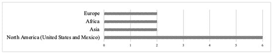 As for the type of prefabrication, we had respondents from several areas of wooden prefabrication; one represented a company that makes kit homes, one represented a (2D) wood wall panel company, two worked in prefabricated wood structures (beams, trusses, roof, etc.), one worked in glued laminated timber (GLT), and two represented companies that make (3D) modular wood construction. Figure 1 shows the regions where they carry out prefabricated wood construction projects. Most companies (six in the study) export to the American market. The European, Asian, and African markets are part of the export market of only two companies in the study.