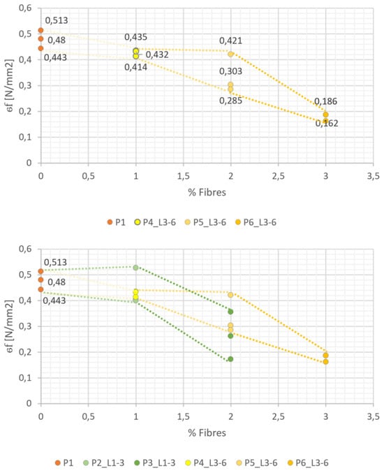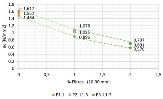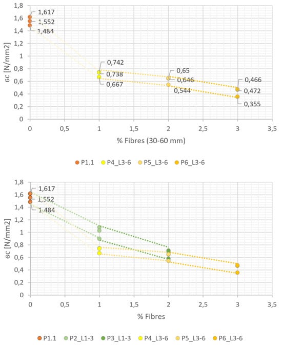 | Adobe Sample | Acronym | Fibres % | Fmax (σc) [N] | σc [MPa] | Fmax (σf) [N] | σf [MPa] |