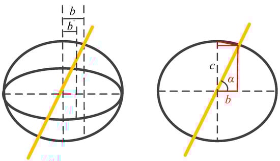 Establishing the geometric relationship between b and the semi-minor axis of the ellipse (c), as shown in Figure 5, and the relationship between the two is as follows: