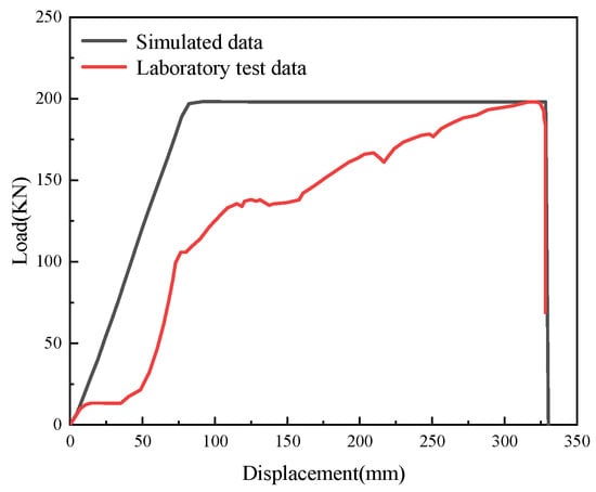 As shown in Figure 12, the simulation curve’s slope in the elastic stage, failure load, and corresponding displacement parameters match well with the test curve, indicating a reasonable calibration of the parameters.
