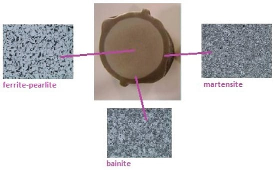 Typical view of cross-section of Tempcore rebars (B500c and B450c) with discrete phases of martensite, bainite, and ferrite–pearlite.