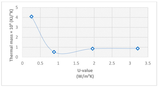 where is the thermal mass of the body. The following Figure 14 previews the relation change of the U-values with respect to different wall thermal masses.