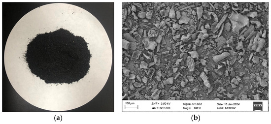 The processed RHA. (a) Macroscopic morphology. (b) Microscopic morphology.