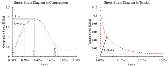 Representative stress-strain relationship of the masonry material adopted for pushover analyses [].