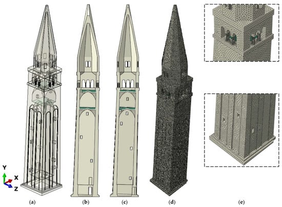- Preciado, A. Seismic Vulnerability and Failure Modes Simulation of Ancient Masonry Towers by Validated Virtual Finite Element Models. Eng. Fail. Anal. 2015, 57, 72–87. [Google Scholar] [CrossRef]