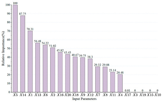 Using a Python program, we calculated and ranked the VIM values of each feature, as shown in Figure 6. The results indicate that, among the 20 feature attributes, the VIM values for Number of Door Hoods (X17), Number of Floors (X3), Construction Techniques (X19), Ground Construction (X15), and Partition Screen Material (X10) are all zero, rendering them ineffective as features. The relative VIM values for the other features all exceeded 20%; hence, we selected these 15 features as input features for the cost estimation of replica Huizhou traditional vernacular dwellings. This approach significantly enhanced the efficiency of data organization and model computation, reducing the time and cost for cost engineers in data preparation and model calculation.
