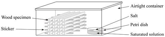 Schematic diagram of the stacked wood specimens in an airtight container during drying.