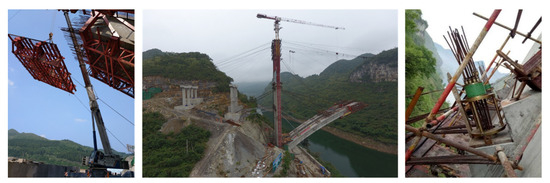 Photos of some risk locations during the construction process of cantilever casting concrete arch bridges [5].