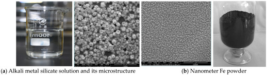 In this test, alkali metal silicate solution was chosen as the mother liquor of the indicator, and iron powder with a particle size of 50 nm was chosen as the dispersant of the indicator, as shown in Figure 10. The indicator was made by mixing the two, as shown in Figure 11. The physical parameters of the indicator are detailed in Table 3.