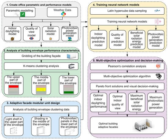 This section proposes an adaptive façade optimization design framework based on building envelope performance characteristics. The framework consists of five main steps: