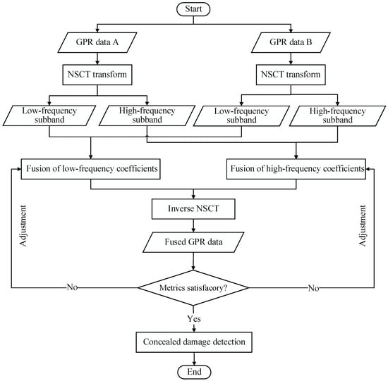 30] developed a new type of transform for image fusion by combining the multiwavelet transform with a non-subsampled direction filter bank. In contrast, the applications of NSCT to multifrequency GPR image fusion for conceal damage detection in transport infrastructures are rarely reported.