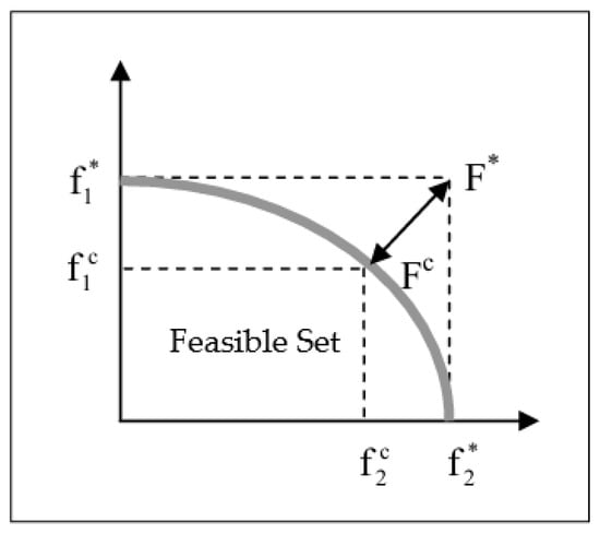 The VIKOR method, named after the Serbian phrase “VIseKriterijumsa Optimizacija I Kompromisno Resenje” (Multi-Criteria Optimization and Compromise Solution), was first proposed by Opricovic and Tzeng for the optimization of multi-criteria problems []. VIKOR is highly effective in multi-criteria optimization and compromise solutions, providing a balanced and comprehensive assessment when used alongside AHP. The VIKOR method, proposed for the optimization of multi-criteria problems, aims to determine a compromise ranking and achieve a compromise solution under specified weights. By ranking alternatives under conflicting criteria, the method facilitates the selection of the most suitable options, addressing a multi-criteria ranking index based on proximity to the ideal solution. The VIKOR method provides the best solution by balancing different criteria, which is particularly useful in situations where criteria may conflict with each other. The VIKOR method aims to maximize the group benefit of the majority while minimizing the individual regret of the competitors. Its calculations are quite simple and straightforward []. The foundations of the compromise solution are established by Yu []. A compromise solution is the one closest to the ideal solution, and compromise involves reaching an agreement on a common acceptance []. The VIKOR method addresses the selection of one alternative or ranking of alternatives in the presence of conflicting criteria []. Assuming that each alternative is evaluated for each criterion, proximity values to the ideal alternative are compared to achieve a compromise ranking []. The basis for compromise ranking in multi-criteria measurement is the norm used as a summation function in compromise programming [].