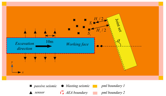 The occurrence of fault disasters such as rock bursts is the result of the combined effects of excavation disturbance and the development of fault fissures. We can use mechanical behavior analysis and relevant statistical methods to predict and simulate the impact of excavation disturbance [3,4,5]. For the dynamic development of faults, we can use some in-situ monitoring methods. Microseismic monitoring technology is an effective technique for the monitoring and early warning of rock mass failure, and is considered crucial for obtaining premonitory information on rock fracture to predict rock burst risk. It has been widely used in deep rock engineering [6,7]. Previous studies have indicated that the occurrence of instantaneous rockbursts near fault zones and fractured zones tend to have a higher intensity, often resulting in larger “V”-shaped blast craters [8]. The spatial evolution of microseismic events indicates that cracks initially propagate along the structural surface, and eventually slide and fail along the surface [9]. The presence of structural surfaces is the dominant factor triggering such disasters. However, these conclusions are mostly drawn from post-exposure fault analysis. In other words, if we can master information in advance on native faults during microseismic monitoring and combine it with new seismic events, we can effectively improve the accuracy of fault disaster early warning. Therefore, understanding the distribution of forward faults ahead of the tunnel face is a crucial task for an MS.