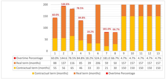 - Marella, G.; Antoniucci, V. Time Overrun in Public Works—Evidence from North-East Italy. Sustainability 2019, 11, 7057. [Google Scholar] [CrossRef]