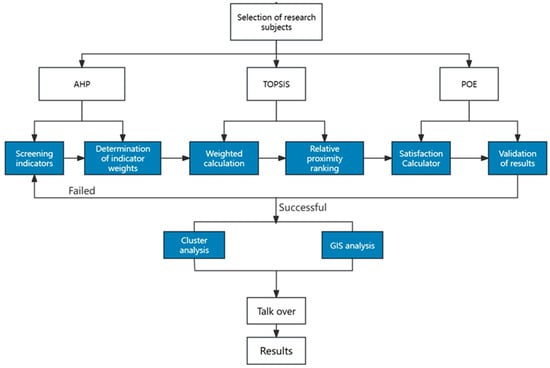 The AHP-TOPSIS is the best choice when many decision standards exist at the same time. Some scholars use this method to evaluate heritage’s current situation, which determines its application value in the research of heritage protection [,,]. However, this method has subjective judgments based on index screening and indicator weight determination. With the method of AHP-TOPSIS-POE, the study of assessing the landscape quality of urban country parks and tea gardens obtained a relatively reasonable evaluation effect and decreased the errors caused by human subjectivity [,]. However, this method is rarely used in research on public participation.