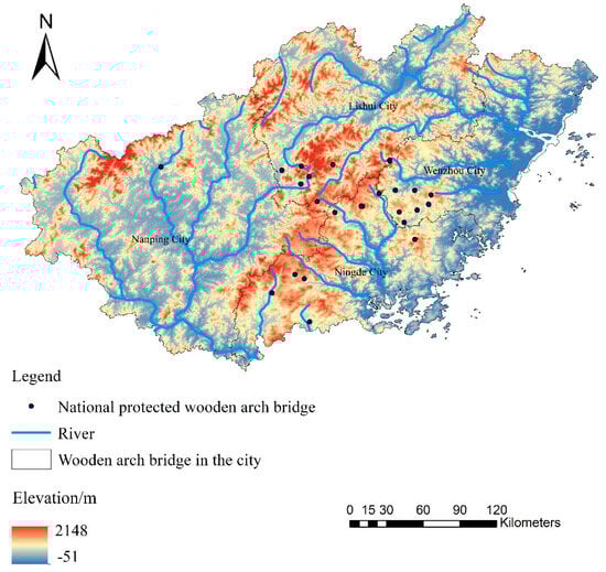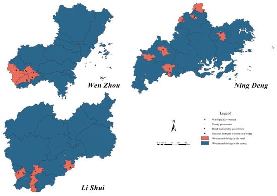 However, many factors influence public participation. At present, regarding the topic of public participation in heritage protection, scholars’ main study direction is stakeholders [,]. Typically, most research focuses on a single region’s public participation level in heritage preservation but rarely compares the levels of public participation in different regions and rarely studies the different regions’ influence on the public participation level. Therefore, it is crucial to explore how geographical factors influence cultural heritage protection from the aspect of public participation. Wooden arcade bridges, located in two provinces and four cities in China, with their complex geographical conditions and research potential, provide excellent objects for this study.