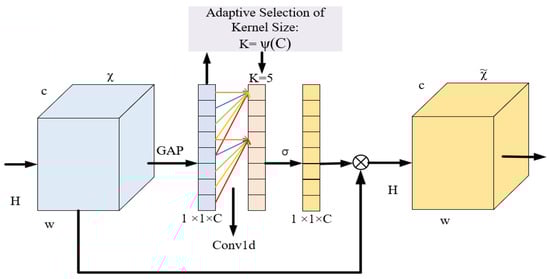 When , the ECA module can achieve the same effect as the SE (Squeeze-and-Excitation) mechanism, despite the lower complexity of the model. Therefore, both performance and efficiency are ensured for the model by capturing the cross-channel exchange of information.