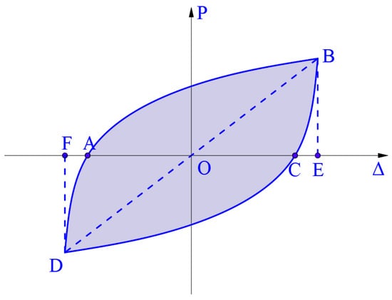 where and represent the areas enclosed by the hysteresis curve and the triangle presented in Figure 12.