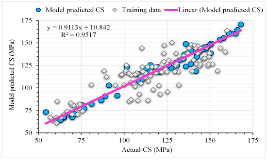 Correlation between actual and predicted compressive strength.