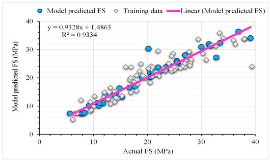 Correlation between actual and predicted flexural strength.