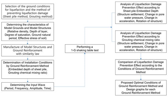 The grouting method, used for ground improvement, involves increasing ground strength by injecting grouting chemicals into the soil. Many studies have focused on the application of the grouting method to prevent liquefaction damage, mainly on the method of injecting the grouting chemical and the effect of preventing liquefaction damage due to the grouting method.
