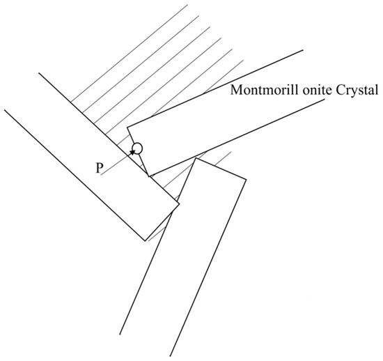 Montmorillonite minerals with a certain amount of water added are shown in Figure 7a. According to the diffusion theory and the semipermeable membrane principle, the osmotic pressure makes the water molecules continuously enter the crystal layer from the pore solution (Figure 7a, arrow direction) until the osmotic pressures achieve a balance. In the continuous flow of water molecules, montmorillonite in BCS would appear to have significant expansion.
