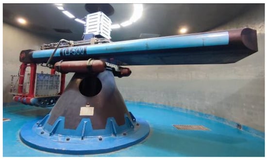 After investigation and comparison, a TLJ-500 large geotechnical centrifuge of state key laboratory of geohazard prevention and geoenvironment protection was used for this test. The device is shown in Figure 2. Its main technical parameters include: a maximum capacity of 500 g·t, a maximum centrifugal acceleration of 250 g, and it can operate continuously for 12 h under full load conditions. The selected model box size for the test is 1.0 m × 0.6 m × 0.8 m.