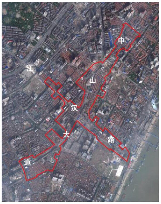 This research refers to the systematic planning of the historical and cultural heritage area in the main urban area of Wuhan [40], selecting the historical block in Wuhan Jianghan Road as a research object (Figure 2). The historical block in Wuhan Jianghan Road is the first batch of national historical districts in China, with a total area of about 51 hectares and a history of about 160 years. It shows the modern concession culture, trade culture, revolutionary culture, and Li Fen culture of Hankou, and has a relatively concentrated cultural heritage. At the same time, the historical buildings and historical environment in this area are the original appearance retained throughout history. It has a relatively complete historical outlook [41]. There are 20 existing cultural relic protection sites in the block, including four national-level sites, two provincial-level sites, 13 municipal-level sites, 41 municipal outstanding historical buildings, and 64 municipal buildings. The rich historical and cultural resources constitute the core part of the cultural heritage in Wuhan city [42]. Between 2014 and 2016, the renovation plan of the block not only enhanced the functionality and comfort of the block but also provided strong support for the space utilization of cultural heritage in this area.